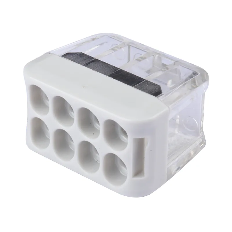 CHTAR 2P 3P 4P 5P 6P 8P Greitosios laidų jungtys be svirtelių yra pagamintos iš UL94 V0 klasės kompiuterio korpuso medžiagos, Conductive pagamintas iš T2 vario su skarda, o spyruoklė pagaminta iš S301. Jis gali būti jungiamas 0,5-2,5 mm2 standžiais laidais, jame buvo numatytas skirtingas skylių skaičius skirtingam laidų kiekiui pasirinkti. Jį galima gerai sujungti 2 laidais iki 8 laidų. Klientams galime pagaminti įvairių spalvų ar korpusų.
