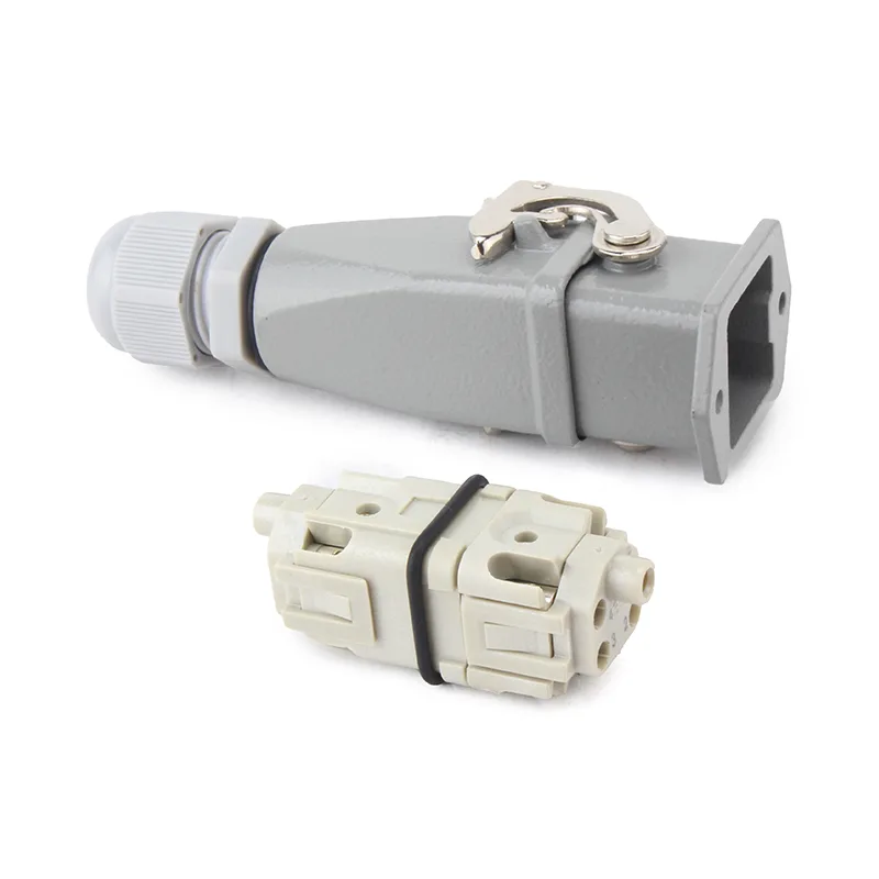 HA serijos sunkiosios jungtys naudojamos mažo dydžio pozicijų laidų prijungimui. Jūsų pasirinkimui yra 3+1P, 4+1P, 10P ir 16P. Jis gali būti derinamas su viršutiniu ir šoniniu korpusu.