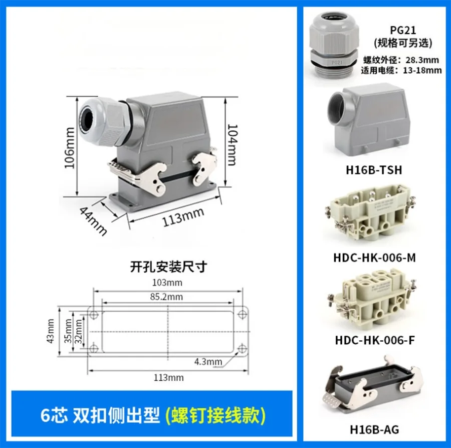 80A 4+2 kontaktų Insert Heavy Duty Jungtis yra apdorota H16B-TSH aliuminiu Stiprios jungties korpusas. Jis pagamintas iš tvirtos PC medžiagos ir žalvario pasidabruoto .CHTAR žalvariniai kaiščiai yra padengti sidabru, kuris yra geros kokybės ir geresnis elektros laidumas. Jame yra sandarinimo gumos, kad jis būtų atsparus vandeniui.