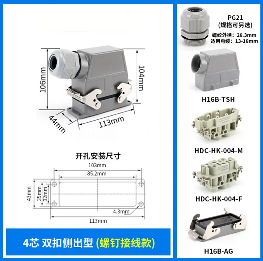 HK-004/0-M HK Sunkiosios jungtys veikia esant 80A srovei. Tai yra 4 kontaktai, skirti susisiekti su laidais. Jis siūlomas skirtingoms darbo sąlygoms ir populiarus automatinėse pramonės šakose bei mašinų laidų jungtyse.