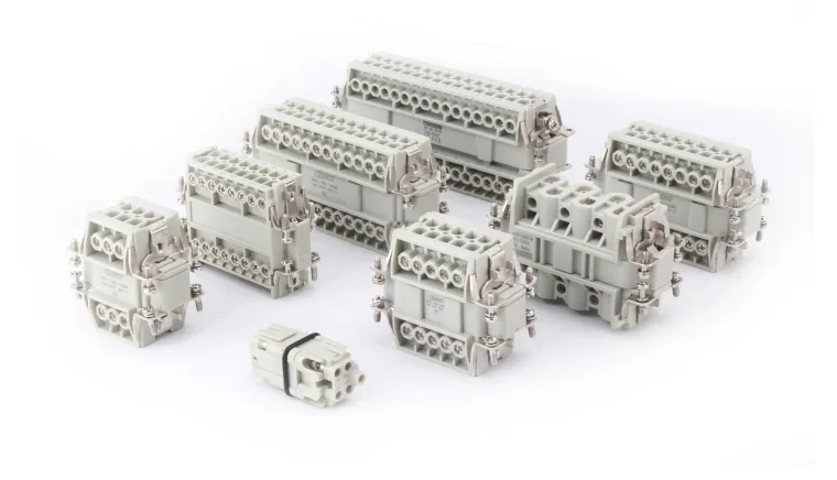Įdėkite sunkiasvores jungtis, kad būtų tiekiamas mažos varžos, patikimas elektros srovės (galios) arba signalų kelias tarp kabelio ir jungties įrangos. Norint fiziškai pritvirtinti laidą arba PCB laidą, užtikrinant, kad jungtis liktų nepažeista veikiant vibracijai, smūgiams ir pasikartojantiems sujungimo ciklams. Jie sukuria standartizuotą, pakartojamą sąsają tarp įrangos ar kabelių pynimų, supaprastindami gamybą ir priežiūrą. Izoliacinis korpusas aplink gnybtus užtikrina elektros izoliaciją tarp polių (apsaugo nuo trumpojo jungimo) ir apsaugo kontaktus nuo fizinių pažeidimų tvarkymo metu.