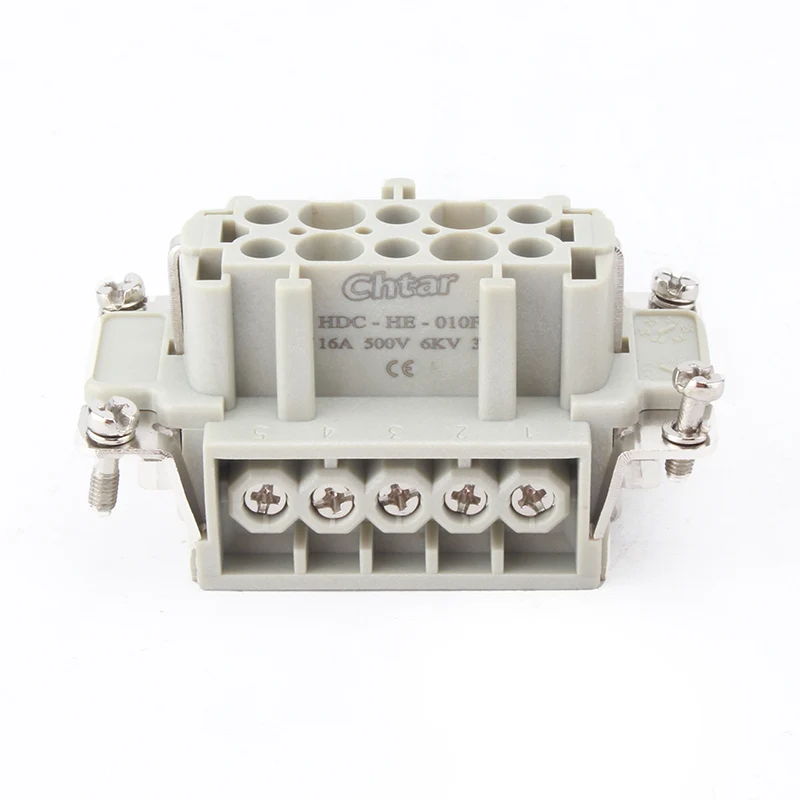 Patvari CHTAR M/F 10 kontaktų įdėklo sunkiųjų apkrovų jungtis naudojama kartu su H10B tvirtos jungties korpusu. Jis turi 10 kontaktų ir yra sujungtas 10 laidų. Jie pagaminti iš didelio stiprumo kompiuterio, o viduje yra žalvario sidabru padengti kaiščiai. Tikimės tapti jūsų patikimu ilgalaikiu partneriu Kinijoje.