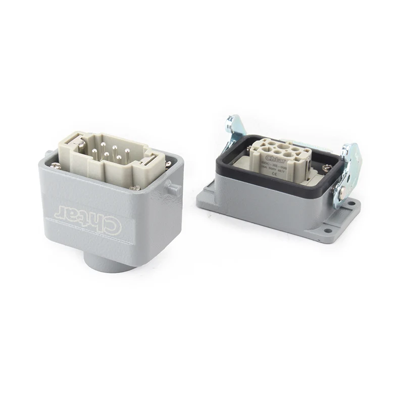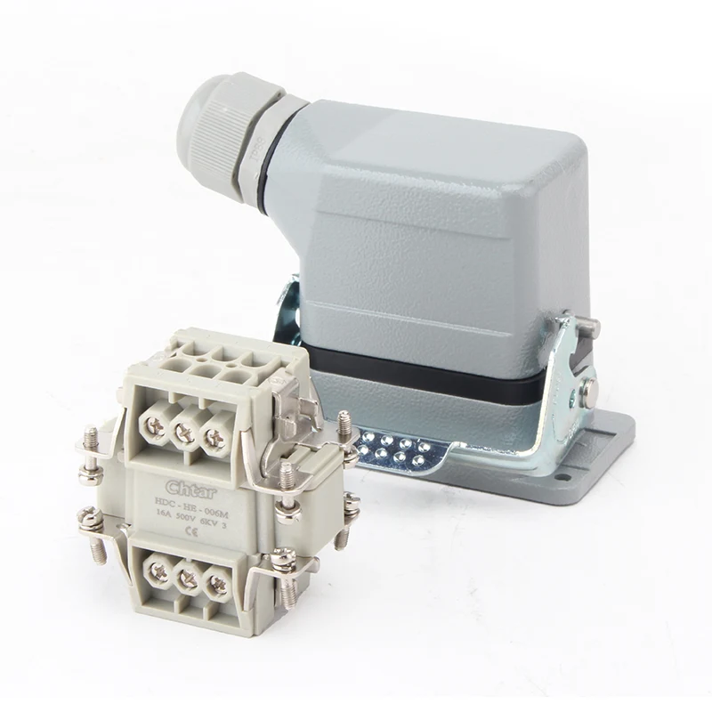 Jis sumontuotas 16A H6B korpuso sunkioje jungtyje. M/F 6 Pin Insert Heavy Duty Connector yra pagamintas iš tvirtos PC medžiagos ir žalvario, padengtas sidabru. Mūsų kaiščiai yra padengti sidabru, labai geros kokybės ir daug geresnio elektros laidumo. Jis surinktas su sandarinimo guma, kad būtų atsparus vandeniui.