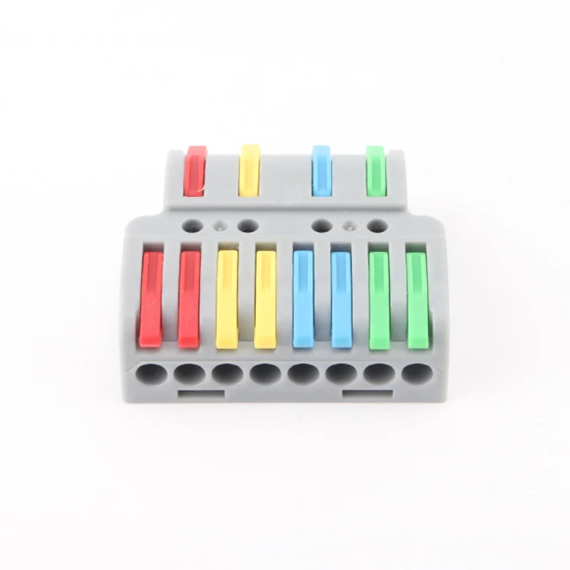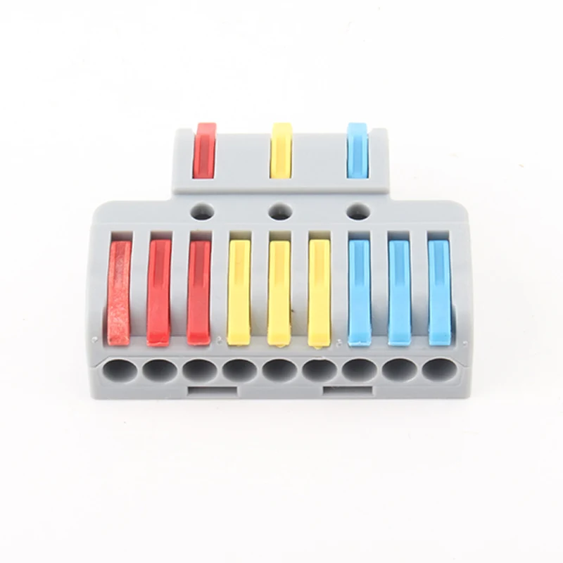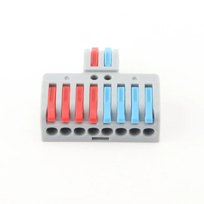 Multi-in Multi Out Splicing Wire Quick Connectors Klasikinė gaminio išvaizda, skirtingų spalvų rankenos pertvaros leidžia atskirti gaminio laidų kryptį. Leiskite vartotojams aiškiau žinoti, kaip prijungti atšakas. Bandymo anga, skirta gaminio viršuje, leidžia klientams patikrinti įjungimo veikimą po laidų prijungimo.